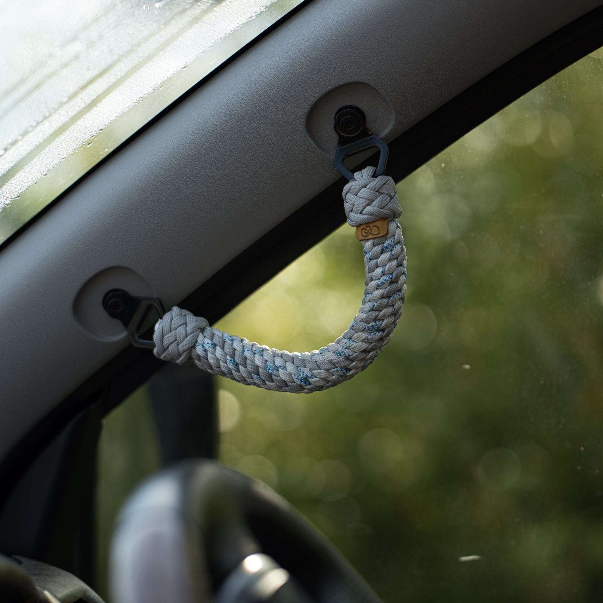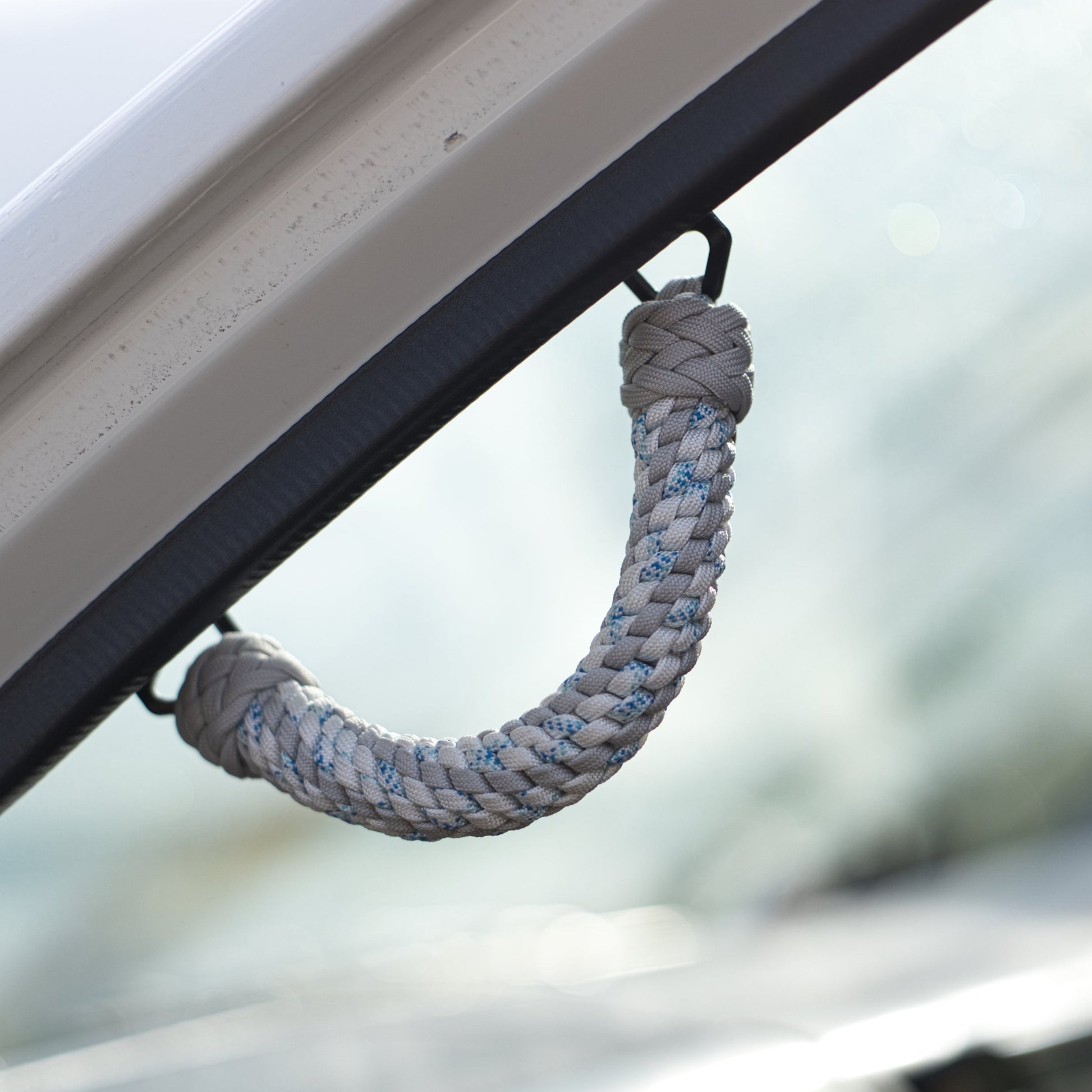 ハイエースの乗り降りをしやすくすると同時に、車内の印象をさりげなく整えるパラコード仕様のアシストグリップ「noru grip」。